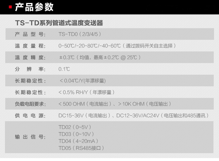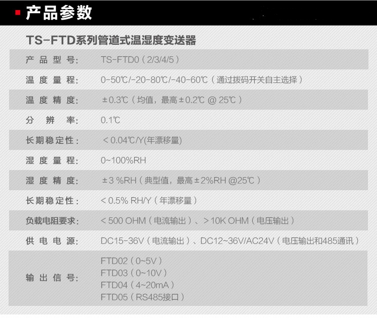 温度量程:0-50℃/-20-80℃/-40-60℃(通过拨码开关自主选择)